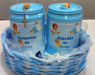 Cesta para Bebê com cestinho, acompanha dois saches em forma de coração e um Tercinho azul